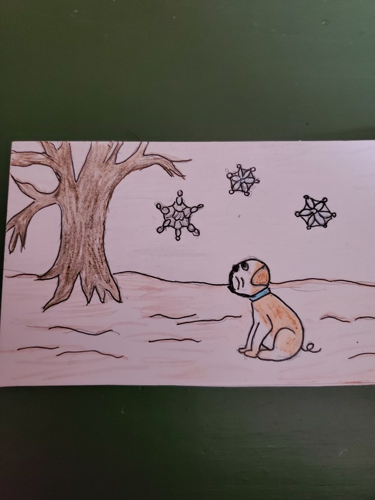 “The sky is so thoughtless. It scatters its lacy ice flowers all over the place where they get stepped on and dirty and melted by our hot feet. They aren’t even lacy ice anymore. Then they dry up…and go back into the sky… until the sky gets full and careless and drops them again. Well…that’s okay. They are pretty when they are new.”