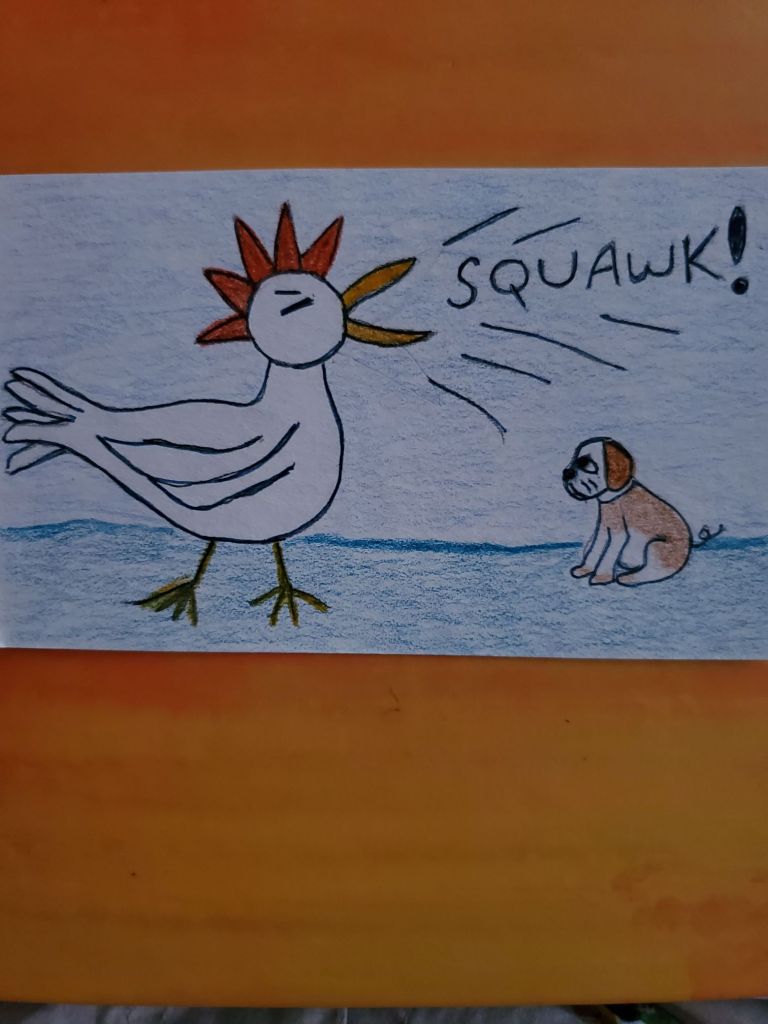 Me: No, it just seems like it. I harvested the chickens’ eggs. One of them exploded.